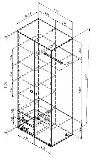 | *Размеры (ВхШхГ), мм: | 2160х880х550 мм |