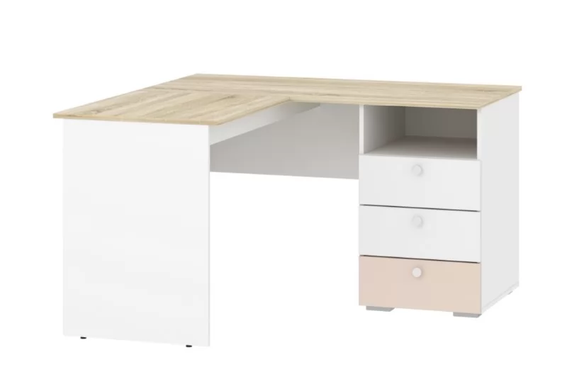 Стол письменный угловой НМ 041.41 Банни поможет оборудовать в комнате подростка комфортное и эргономичное рабочее пространство. Модель позволит задействовать обычно пустующее место в углу, освободив больше пространства для зоны отдыха. На рабочей поверхности модуля достаточно места для размещения не только письменных принадлежностей, но и ноутбука. Закругленные углы столешницы делают эксплуатацию модуля безопасной для ребенка. По окончании занятий ребенок сможет убрать книги и тетради в выдвижные ящики для поддержания порядка на рабочем месте.