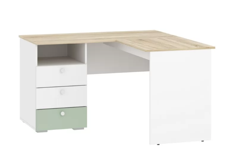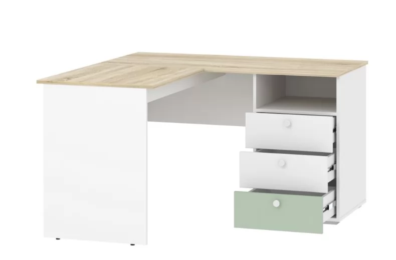 Стол письменный угловой НМ 041.41 Банни поможет оборудовать в комнате подростка комфортное и эргономичное рабочее пространство. Модель позволит задействовать обычно пустующее место в углу, освободив больше пространства для зоны отдыха. На рабочей поверхности модуля достаточно места для размещения не только письменных принадлежностей, но и ноутбука. Закругленные углы столешницы делают эксплуатацию модуля безопасной для ребенка. По окончании занятий ребенок сможет убрать книги и тетради в выдвижные ящики для поддержания порядка на рабочем месте.