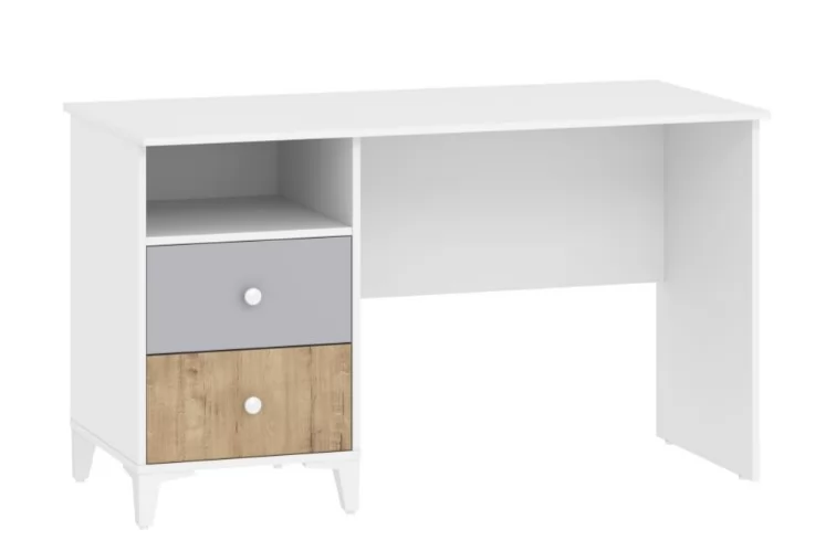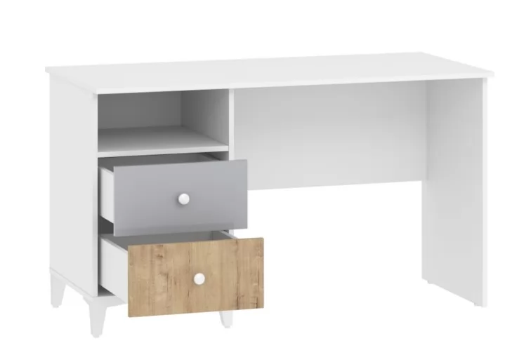 Одним из важнейших принципов развития ребенка является обустройство его рабочего места, где школьник сможет выполнять уроки, заниматься творчеством и любимым хобби. Письменный стол «Морти» с тумбой позволит оформить в спальне рабочий уголок в скандинавском стиле. Белый цвет столешницы хорошо гармонирует с контрастными ящиками. Данная модель дополнена небольшим модулем из пары выдвижных ящиков и открытой ниши. Вместительная полка под рабочей поверхностью прекрасно подходит для книг и тетрадей. Тумбу с ящиками возможно разместить как в левой, так и в правой части изделия в зависимости от предпочтений ребенка. Ящика с удобными ручками легко выдвигаются, предоставляя полный доступ к содержимому и позволяя быстро найти необходимый предмет.