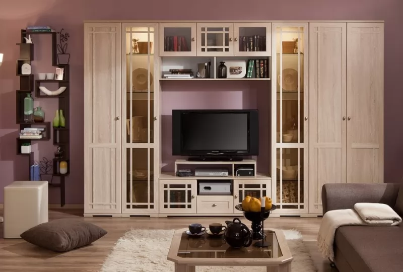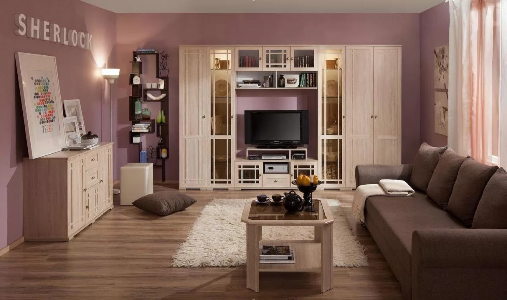 Гостиная Шерлок создана в классическом стиле. Главными особенностями коллекции являются: 2 варианта глубины модулей: 394 мм. и 584 мм. Встроенная подсветка. Место под ТВ диагональю до 47 дюймов. Рамочные фасады МДФ с раскладкой и переплетом. Телескопические шариковые направляющие. Возможность самостоятельного декорирования столешницы стола журнального.