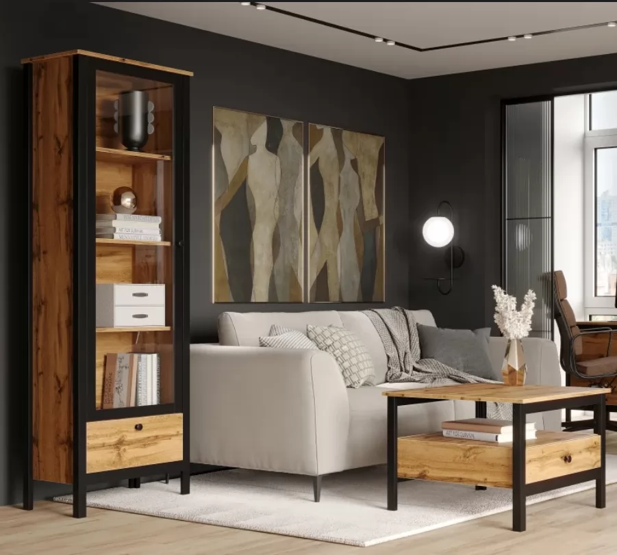Витрина Loft дуб вотан REG1W1S — компактное решение для обустройства гостиной, кабинета или столовой.
