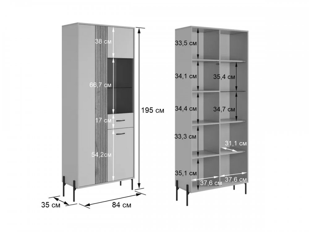 Размеры: Глубина 35 см x Ширина 84 см x Высота 195 см