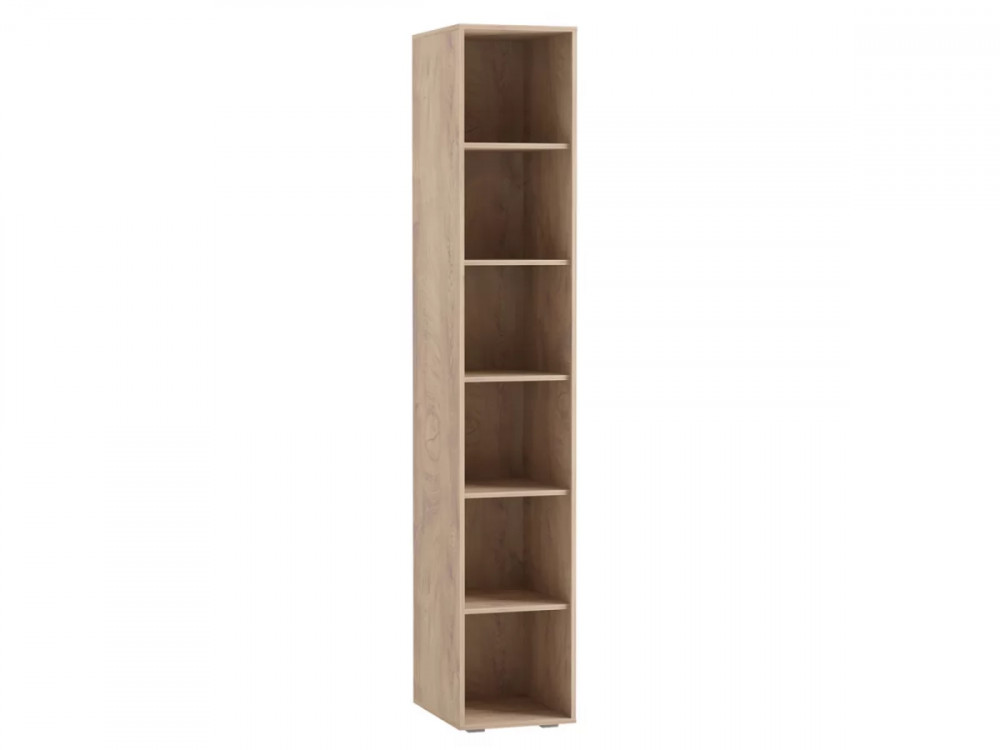 Стеллаж "Муссон" с полками станет отличным дополнением к шкафам одноименной серии. Мебель серии "Муссогн" выполнена в современнои стиле с использованием новейшего декора, имитирующего шпон натуральной сосны.