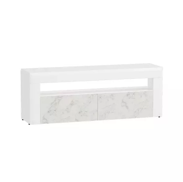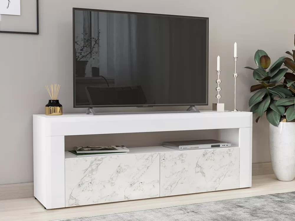 Тумба под ТВ Пьер 13.264 будет отличным дополнением интерьера любой комнаты. Изделие поможет разместить телевизор для более комфортного просмотра новостей, сериалов и различных телепередач. Открытая ниша предназначена для необходимой аппаратуры. А два выдвижных ящика пригодятся для хранения различных вещей и предметов. Направляющие выдвижных ящиков имеют скрытый монтаж и регулировки фасада. Кроме того, они имеют повышенную грузоподъёмность и оснащены доводчиками. Регулируемые опоры позволяют легко компенсировать неровности пола.