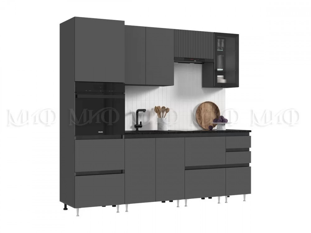 Кухня Техно-6 2,4м (Графит/Графит софт) в Нягани