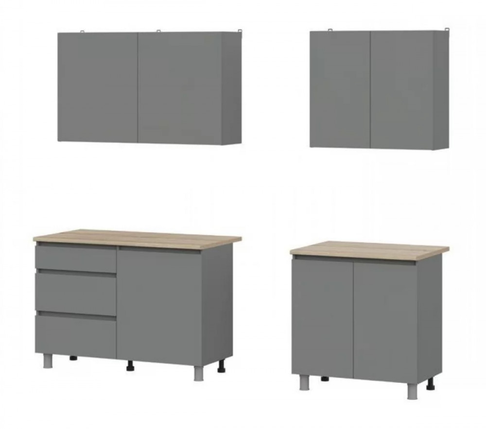 Вес (кг)127.4Ширина (мм)2000Глубина (мм)600Высота (мм)2140Материал изготовленияЛДСПЦвет корпус/фасад: Графит серыйСтолешница Дуб Сонома 26 ммФасады шкафов и столов не имеют ручек и скосов - это тренд на рынке кухрнных гарнитуров.Корпус/Фасад: ЛДСП 16 ммКухня имеет цоколя, впереди устанавливаются декоративные опоры.Петли - без доводчиков.Направляющие ящиков - роликовые.Все модули комплектуются столешницей (под врезную мойку)