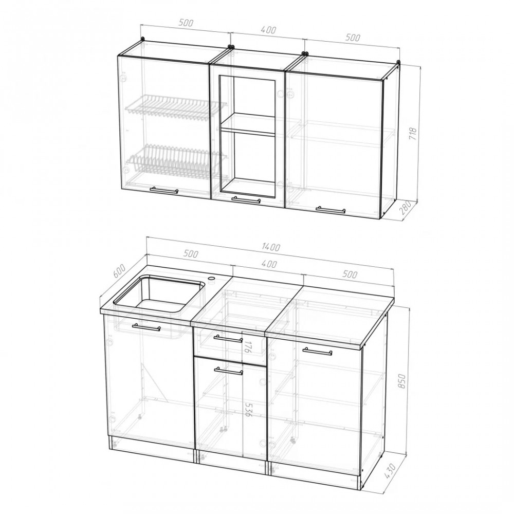 Кухонный гарнитур Симона медиум 1400 мм в Нягани