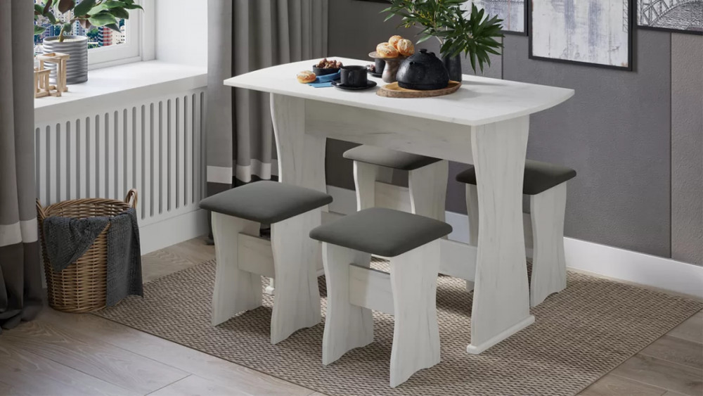 Обеденная группа тип 1 Дуб крафт белый/Велюр серый в Нягани