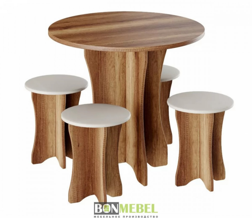 Обеденная группа Тип-6 отличается простым, но привлекательным стилем. Композиция без труда вольется в любой современный интерьер, сделав кухонное пространство более практичным и уютным. Обивка из экокожи обладает износостойкостью, устойчивостью к загрязнениям и не прихотлив в уходе. Мягкие сиденья табуретов имеют мягкий и упругий слой, что создает максимально комфортные условия для сидящего. Классическое контрастное сочетание цветов сделает любой интерьер интересным и гармоничным. Для изготовления моделей используется прочная ЛДСП. Обивка табуретов произведена из искусственной кожи.
