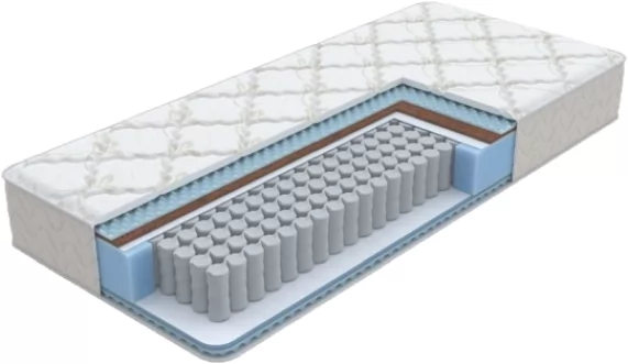 Матрас с разной жесткостью сторон на основе блока независимых пружин, который равномерно распределяет нагрузку по всей поверхности матраса и обеспечивает направленную поддержку позвоночника. В качестве наполнителей с одной стороны используется латексированная кокосовая койра, а с другой эластичная пена.