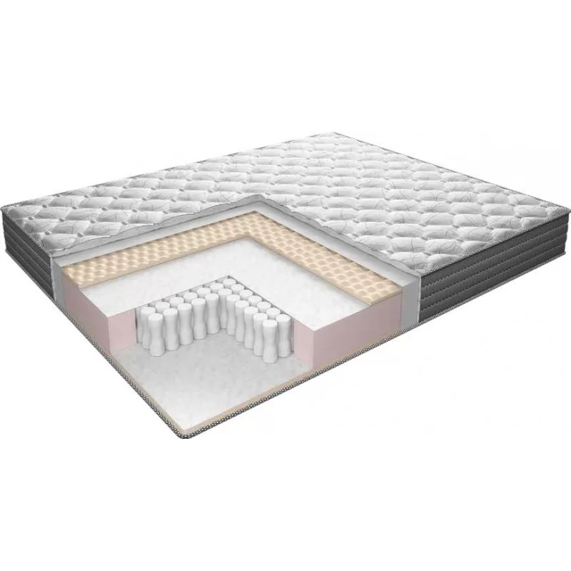 Мягкий матрас на основе блока независимых пружин «Грация» Основной наполнитель: профилированная ортопедическая пена особой ячеистой формы, которая оказывает микромассажное действие и необходимую поддержку позвоночнику за счет своих упругих свойств. Система комфорта «Basic Plus»: прочное покрытие на гипоаллергенном объемном наполнителе повышенной плотности, обеспечивающее максимальный комфорт во время сна.