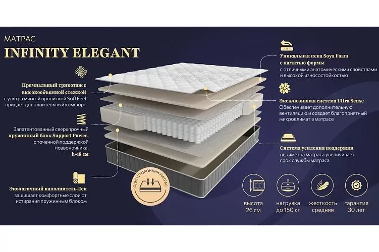 Матрас INFINITY ELEGANT 1800*2000мм (Пена/лен, ср.жесткий, h 26см) в Нягани