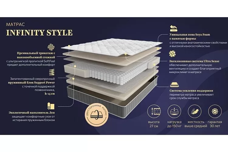 Матрас INFINITY STYLE 1200*2000мм (Пена/лен, жесткий, h 27см) в Нягани