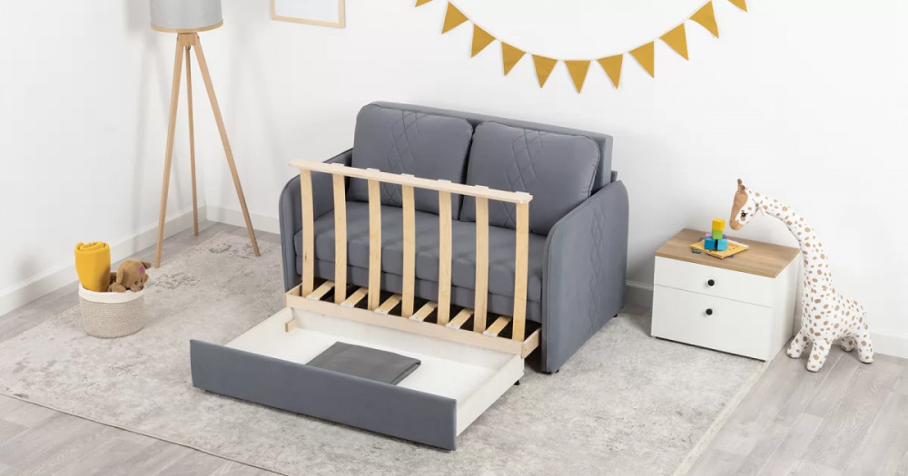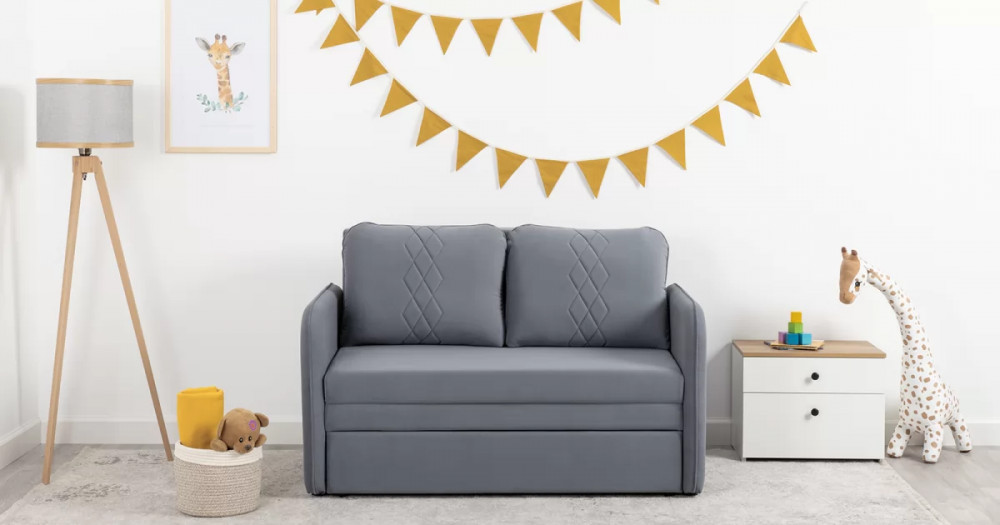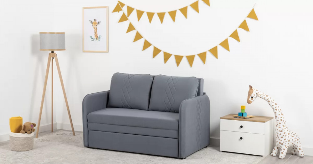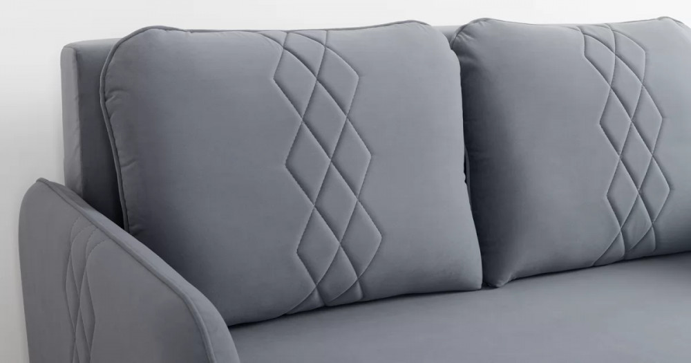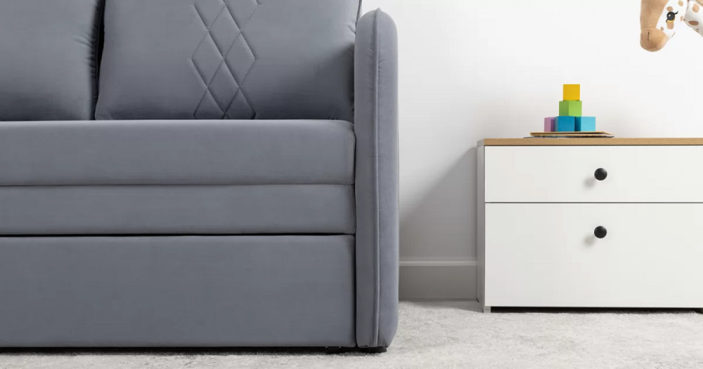 Стильный компактный диван для детской и гостиной. При своих скромных размерах он трансформируется в полноценное спальное место для детей и подростков. Лаконичный дизайн в виде декоративной отстрочки подчеркивает фактуру велюра, а небольшие размеры позволят разместить его в любом пространстве.