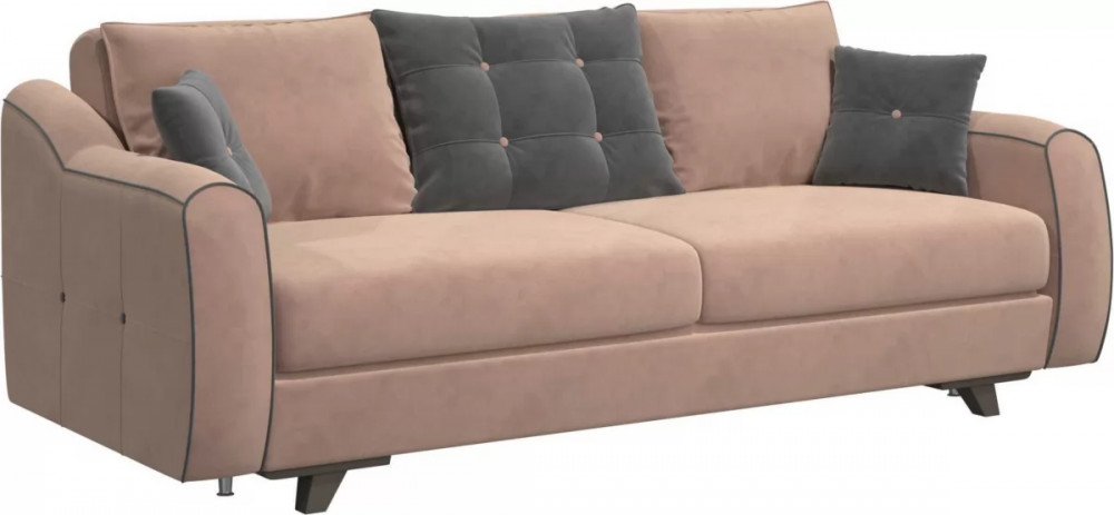 Несколько движений - и диван-кровать превращается в удобное спальное место, а независимый пружинный блок способствует приятному и здоровому сну. В просторный ящик для постельного белья поместится немало принадлежностей для сна.<br /> Стиля модели добавляют контрастные подушки и строчки по периметру отделки. Мягкий кофейный оттенок делает общий дизайн более сдержанным и лаконичным, в то же время обращая на себя внимание.