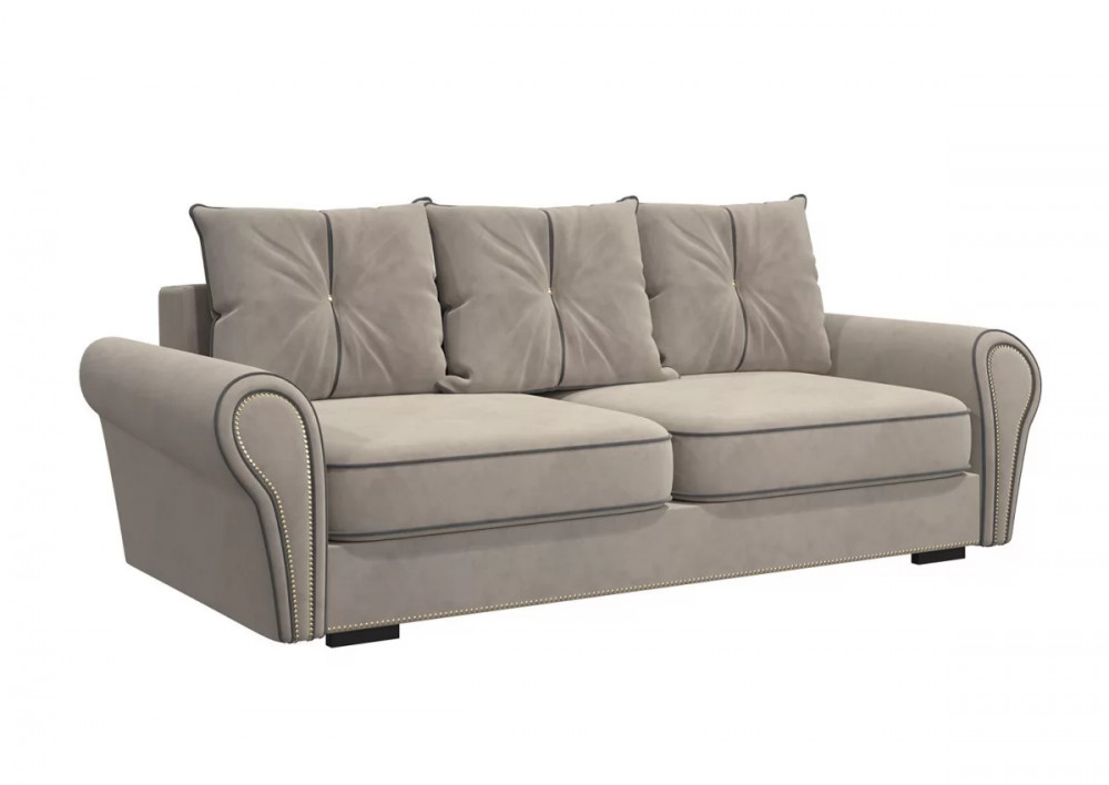Глубина-1110 мм Ширина-2520 мм Высота-960 мм Срок службы-4 года Гарантийный срок-18 месяцев Монтаж-Требует сборки Длина спального места-1980 мм Ширина спального места-1570 мм Высота сидения от пола-510 мм Наполнение-Холкон, ППУ Тип блока-Блок независимых пружин Декор-Кант, Декоративная отстрочка Механизмы трансформации-Еврокнижка Подушки-Набивные большие-3 шт, набивные малые-2 шт