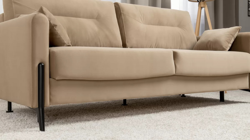 Барселона — современный диван, стиль которого удачно подчеркнут элегантными металлическими опорами. Диван выглядит привлекательно со всех сторон.