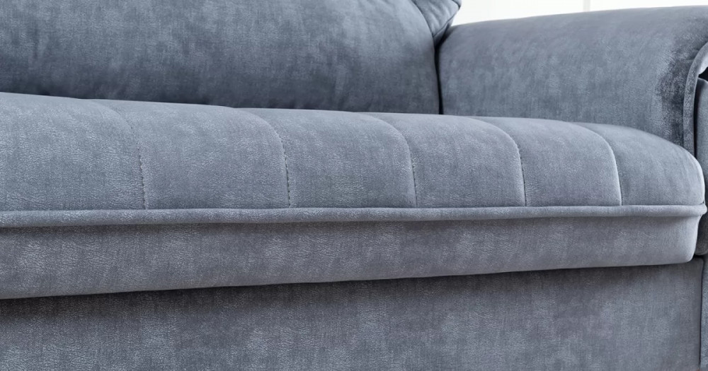 Декоративные канты на подушках дивана, подлокотниках и сиденье. Стежка на передней части сиденья и внешней части подлокотника. Защипы на верхней части подушки. Втяжки с пуговицами на приспинных подушках.