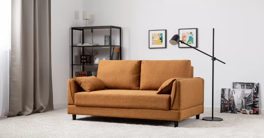 Лаконичный дизайн с деревянными ножками и узкими подлокотниками удачно дополнит не только интерьер гостиной, но и кабинета, и кухни. Кроме того, диван Макс позволяет организовать спальное место в ограниченном пространстве.