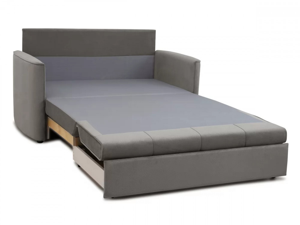 Габаритысложенный (Д x Г х В, мм): 1450 x 800 x 840разложенный (Д x Г х В, мм): 1450 x 2000 x 770спальное место (Д x Ш, мм): 1950 x 1200высота посадки (мм): 460глубина сиденья (мм): 650высота спинки (мм): 450высота подлокотника от сиденья (мм): 120максимально допустимая нагрузка: 80 кгМеханизм трансформацииВыкатной с гнутоклееными латамиБельевой ящикестьодно отделениеразмер отделения (Д x Ш, мм):  1100 x 628 x 100Варианты исполнения6 артикуловсочетание тканей только как на фотоМатериалыосновная ткань: Киви (велюр) / Макс (велюр)выполняется в тканях: Киви 88 велюр (кварцевый серый)каркас: