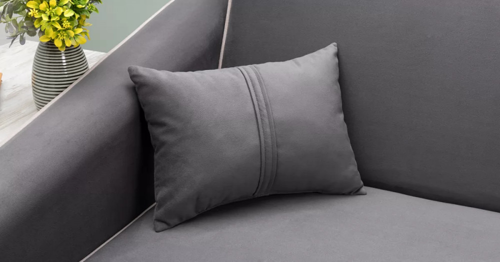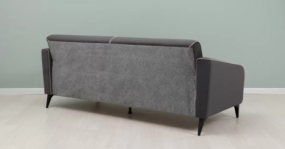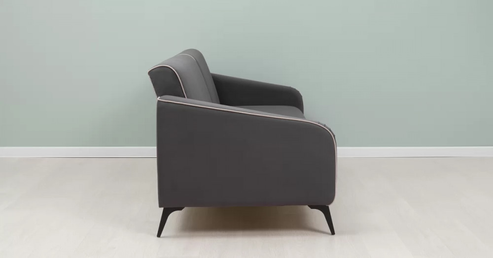 ДВПдекоративные подушки, шт: -2наполнитель подушек: -крошка ППУ и полиэфирное волокно «шарики»материал опор: металлцвет опор: черныйвысота опор (мм): 165ДекорСпинка и сиденье разделяются пополам двойным кантом по центру и одинарным по краям сидения, для придания одной единой формы. Подлокотники с изгибом на лицевой стороне и мягкими закругленным углом со складками, с выраженным контрастным ровным кантом по внешнему контуру изделия и изогнутой линией канта.Назначениев гостиную