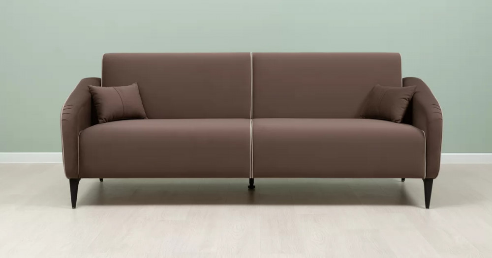 Габаритысложенный (Д x Г х В, мм): -2210 x 910 x 860разложенный (Д x Г х В, мм): -2210 x 1130 x 690спальное место (Д x Ш, мм): -1920 x 1130высота посадки (мм): -460глубина сиденья (мм): -590высота спинки (мм): -450высота подлокотника от сиденья (мм): -150-220максимально допустимая нагрузка: -80 кг на 1 посадочное местоМеханизм трансформации-КнижкаБельевой ящик-есть с перегородкой по центру (2 отделения)размер отделения (Д x Ш, мм): 740 x 885 x 885Варианты исполнения-5 артикуловсочетание тканей только как на фотоМатериалыосновная ткань: -Velutto (велюр)выполняется в тканях: Velutto 36 (шоколадный)/Velutto 08 (светлый кварцевый серый)каркас: фанера деревянный брус ДСП ДВПдекоративные подушки, шт: -2наполнитель подушек: -крошка ППУ и полиэфирное волокно «шарики»материал опор: металлцвет опор: черныйвысота опор (мм): 165ДекорСпинка и сиденье разделяются пополам двойным кантом по центру и одинарным по краям сидения, для придания одной единой формы. Подлокотники с изгибом на лицевой стороне и мягкими закругленным углом со складками, с выраженным контрастным ровным кантом по внешнему контуру изделия и изогнутой линией канта.Назначениев гостиную в молодежную в гостевую комнату в кабинет в офисТребуется ли сборка-даУпаковкаколичество коробок, шт: 2общий вес с упаковкой, кг: 58,1
