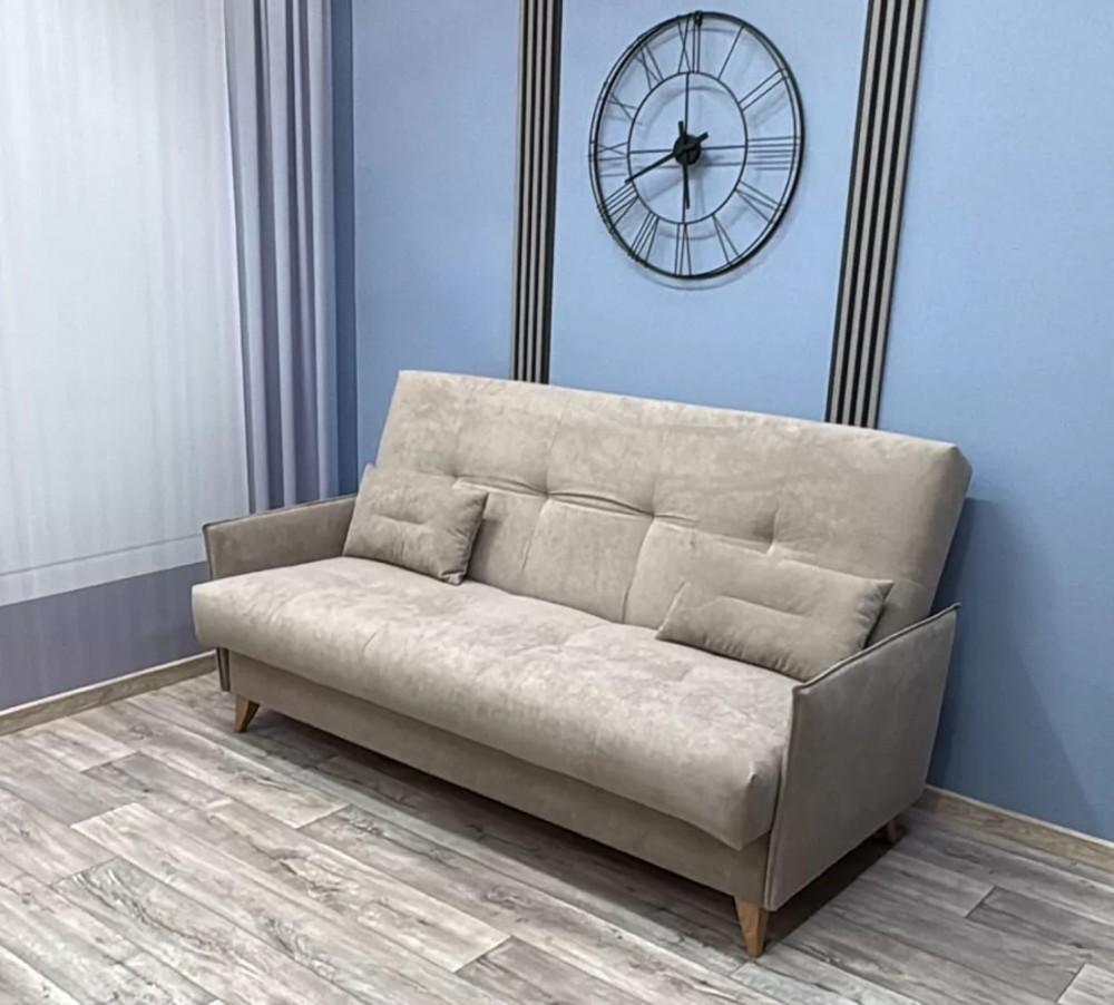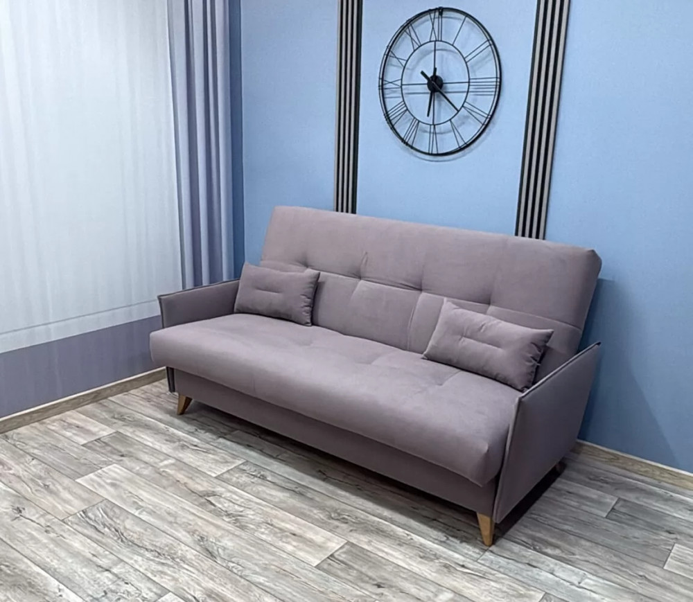 "Рондо" - современный, простой и удобный, компактный диван для отдыха и повседневного сна. Спинка трансформируется в три положения: для сидения, для отдыха в полу-сидящем положении и для сна. Металлический каркас обеспечивает надежность и долговечность эксплуатации дивана. Не менее выгодной особенностью дивана является съемный чехол. Имеется просторный короб для белья. Высокие ножки позволяют беспрепядственно работать роботу-пылисосу .