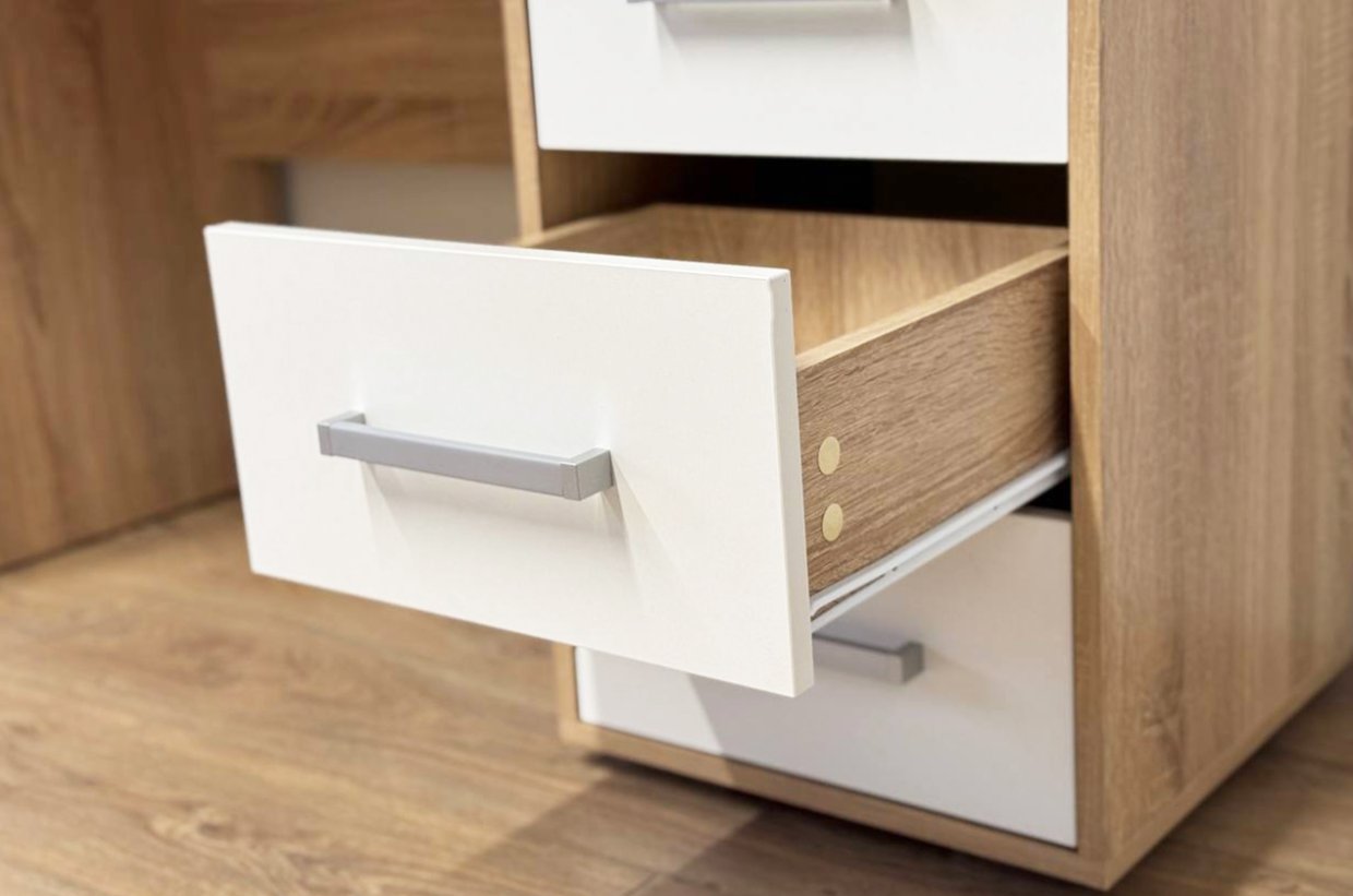 Компьютерный стол Лайт – компактная, удобная модель мебели, которая поможет обустроить комфортабельное рабочее место и в офисе, и дома, отлично подойдет для организации рабочей зоны для школьников средних и старших классов. Лаконичный компьютерный стол Лайт в {{in_city}} выполнен в пастельных светлых тонах, сочетание оттенков цветов придает ему объема и делает оригинальной деталью интерьера. При своей компактности, он достаточно вместителен за счет наличия встроенной тумбы и трех выдвижных ящиков, на утолщенной и прочной столешнице легко можно установить и ноутбук, и компьютер, может быть укомплектован стеллажом и надстройкой с полками.