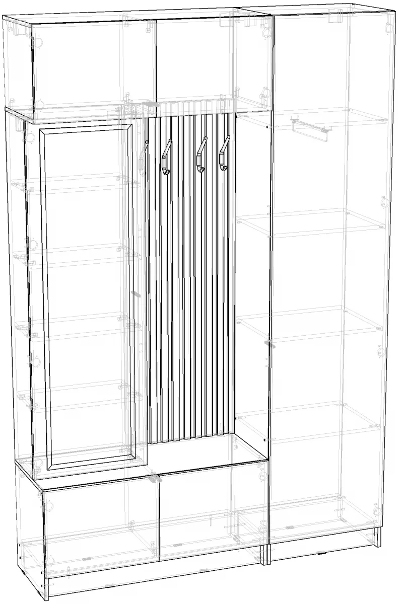 • Габариты: 1550 (ширина) х 414 (глубина) х 2364 (высота) мм.