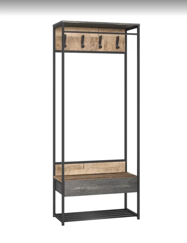 Прихожая Трувор 15.120 поможет создать приветливую и благоприятную атмосферу, которая с порога будет окутывать теплом. Четыре крючка и штанга для вешалок-плечиков созданы для верхней одежды. Для головных уборов предусмотрена небольшая антресоль, а нижняя трубчатая полка предназначена для размещения обуви. Небольшой выдвижной ящик пригодится для мелких аксессуаров и косметики по уходу за обувью.