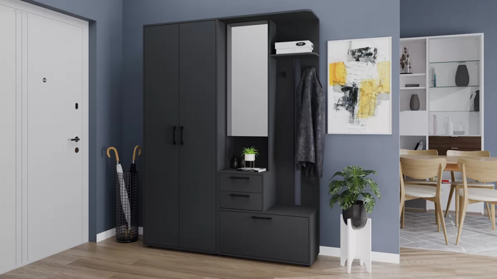 Наполнение: Полка ЛДСП, штанга выдвижная, ящики