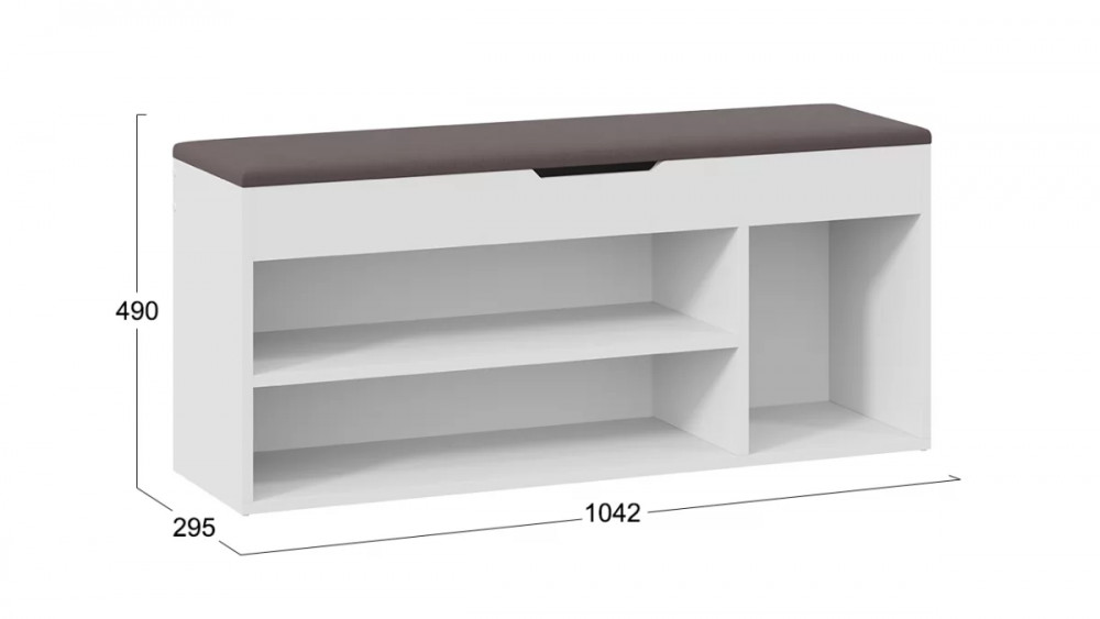 Назначение: Мебель для хранения Зеркало: Нет Гарантийный срок: 24 месяца Комната использования: Прихожая Материал кромки каркаса: ПВХ Стиль: Современный Тип: Тумба для обуви Расположение: Напольный Наполнение: Обувница Материал каркаса: ЛДСП Производство: Россия Габаритная ширина: 1 042 Габаритная высота: 490 Форма предмета: Прямоугольный Габаритная глубина: 295 Количество ящиков: 1 Срок службы: 5 лет Материал фасада: ЛДСП Оттенок: Белый, Серый Цвет: Белый Ясень, Велюр Серый Обивочный материал: Велюр Цвет каркаса: Белый Ясень Цвет фасада: Белый Ясень Оттенок каркаса: Белый Оттенок фасада: Белый Тип сборки: Не универсальный Цвет обивки: Серый Наличие механизма раскладки: Нет Наличие спального места: Нет Коллекция обивочного материала: Veluta lux 19