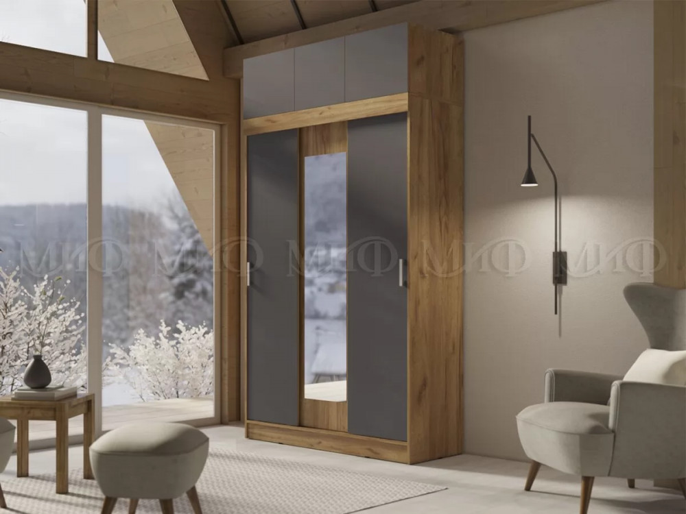 Шкаф с антресолью Басямиф, графит/дуб крафт в Нягани