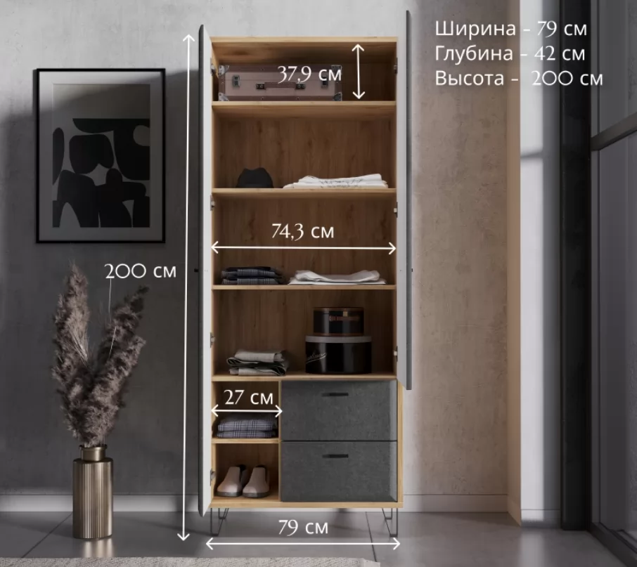 Лаконичный фасад и металлические ручки придают шифоньеру стильный и современный вид. Такая мебельная единица станет акцентным элементом в интерьере, подчеркивая его современный стиль.