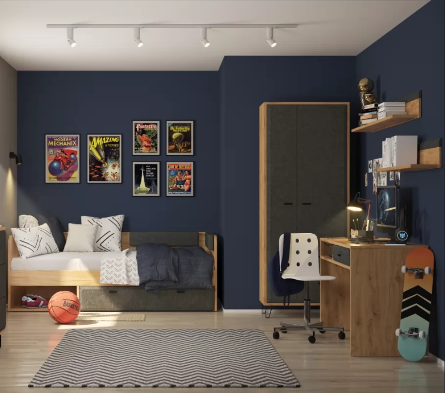 За удобными распашными дверцами скрываются вместительные полки. На них достаточно места для размещения постельного белья, детских вещей, одежды в стопках, книг или предметов в коробках. Два выдвижных ящика в нижней части шкафа предоставляют дополнительное место для хранения игрушек, аксессуаров и даже обуви.