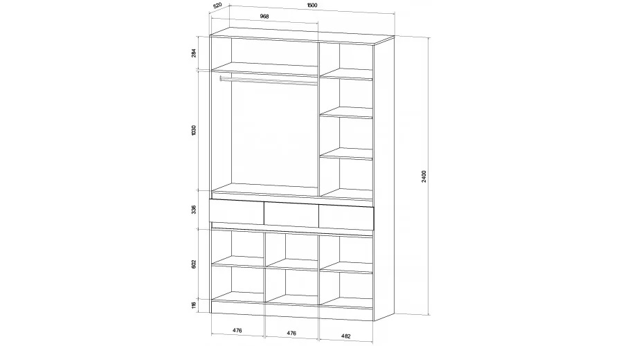 *Размеры (Ш*Г*В), мм:1500*520*2400 мм