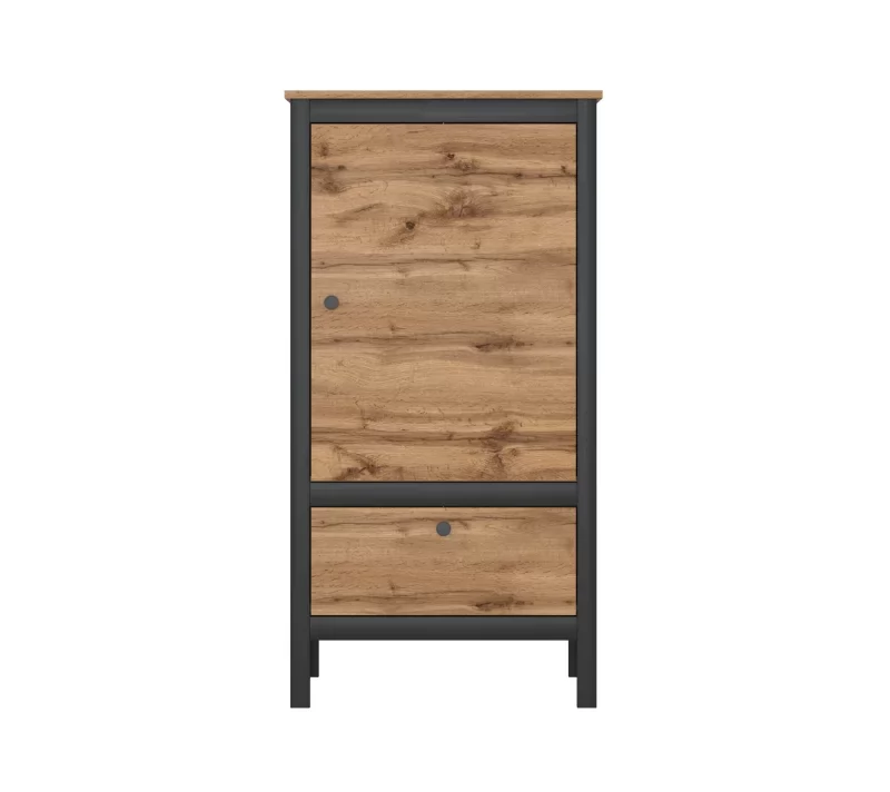 Тумба имеет распашную дверку с металлической ручкой, которая удобно предоставляет доступ к двум просторным нишам. Выдвижной ящик на шариковых направляющих добавляет место для хранения. Тумбу можно поставить в любую комнату и хранить внутри большой перечень вещей.