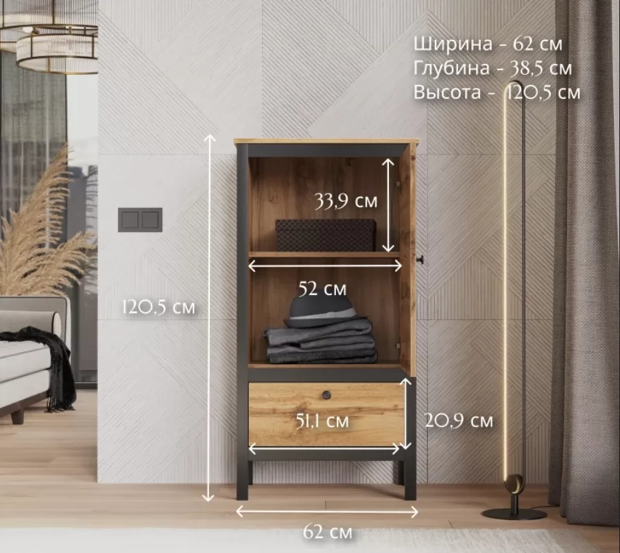 Тумба Loft дуб вотан REG1D1S/60 компактно найдет свой уголок в любой комнате.