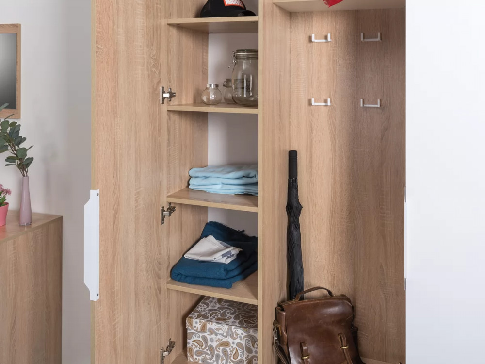 Шкаф для одежды "Куба" с двумя распашными фасадами комплектуется полками вверху и внизу и выдвижной штангой для вешалок.