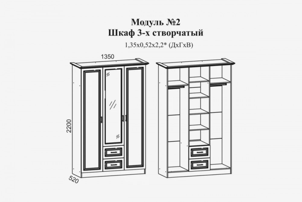 *Размеры (Ш*Г*В), мм:1350х520х2200