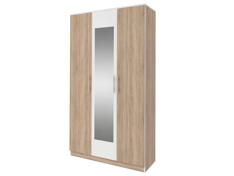 Характеристики: Ширина: 1200 мм Глубина : 590 мм Высота : 2240 мм Материал корпус : КДСП 16 мм Дуб сонома Фасад : ЛДСП 16 мм Дуб сонома/Белый Ручки - пластик. Вместительный многофункциональный шкаф для одежды и белья. Шкаф оснащён продольной металлической штангой и полками из ЛДСП.
