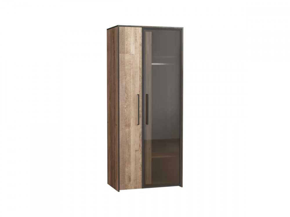 Шкаф Трувор 13.204 предоставит достаточно места для размещения и бережного хранения вашего гардероба. За распашными дверьми находится штанга для вешалок-плечиков с верхней одеждой. Полки, скрытые в левой части, пригодятся для аккуратного размещения сложенной одежды, различных аксессуаров и коробок с обувью. Индустриальная мебель Трувор выполнена в стиле лофт.