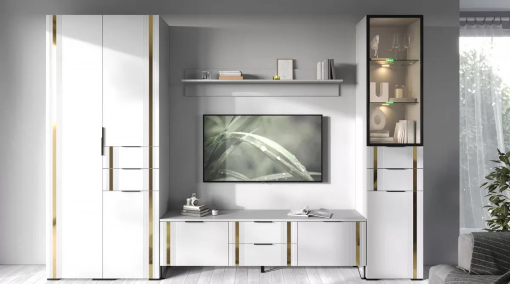 • Декор фасада: стальная полоса золото