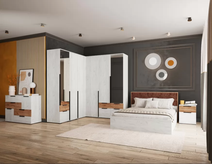 Спальня №1 ЛИЛЛЬ, ЛДСП Дуб крафт белый/Дуб крафт табачный