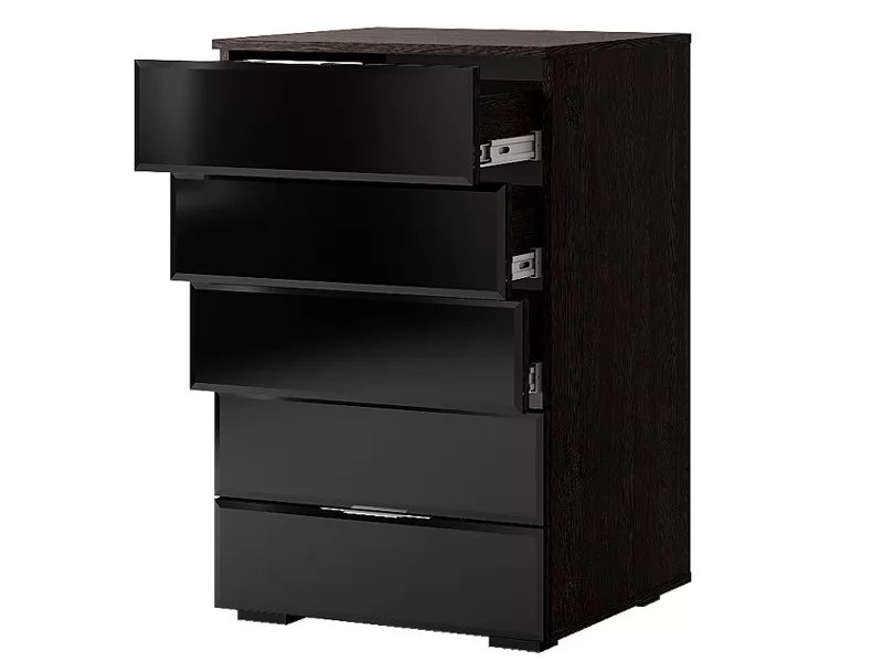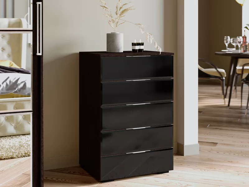 • Фасад комода (дверки выдвижных ящиков), выполненный из ЛДСП, эффектно декорирован лакобелью (Стекло)