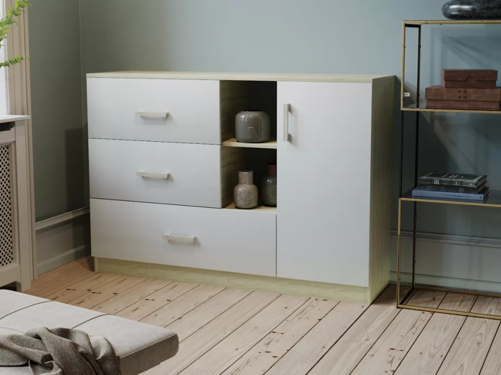 Комод К-3.1 (Росток-Мебель) Дуб сонома/Белый жемчуг в Нягани