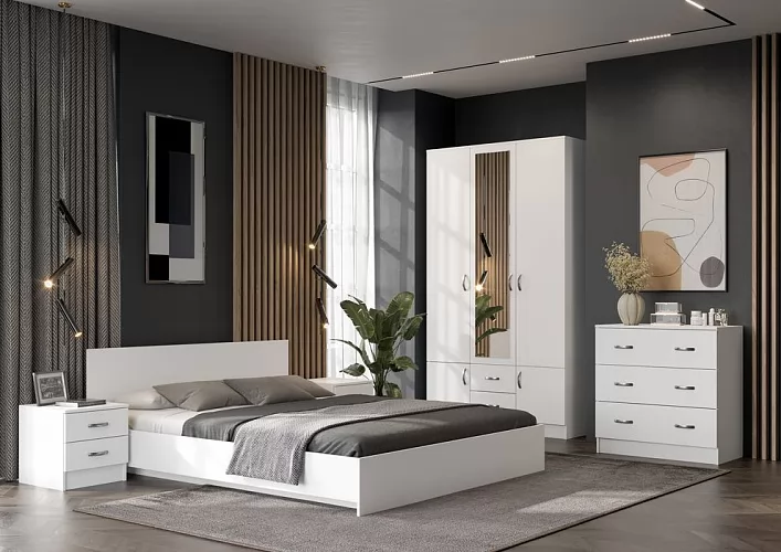 Комод подойдет даже для небольшой спальни, при этом три объемных ящика вместят белье и другие предметы гардероба