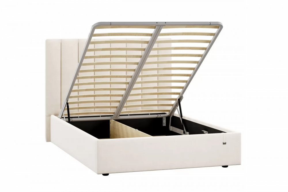 Подъемный механизм легок в управлении, а вместительный короб внутри кровати подойдет для хранения подушек, белья и других вещей. Мягкие тканевые ручки облегчают процесс подъема основания.