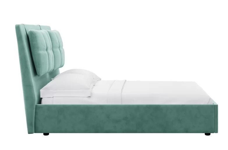 Кровати выполнены в нейтральных и в ярких тканях велюр, что позволяет подобрать подходящий вариант почти под любой интерьер. В качестве декора применяются декоративные подушки на изголовье.